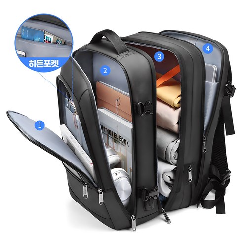 이 백팩의 확장 가능한 기능으로 짐을 신축적으로 조절하세요. 필요에 따라 여행용 필수품을 쉽게 수납하고 정리할 수 있는 충분한 공간을 확보하세요.