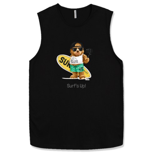 패션의류 Tags:남자 나시티 오버핏, 박스 나시 민소매, 블랙 캔버스, 서프베어 프린트, 일루소 서프베어 민소매