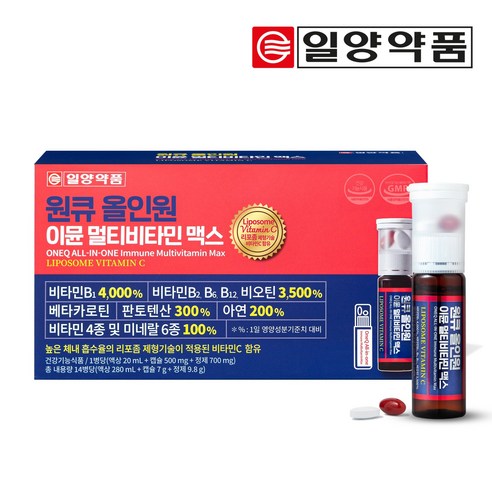 일양약품에서 출시한 원큐 올인원 이뮨 멀티비타민 맥스는 14회분으로 구성된 종합 비타민 보충제입니다. 다양한 비타민, 미네랄, 기타 필수 영양소를 포함하여 신체 건강을 전반적으로 지원하도록 고안되었습니다.