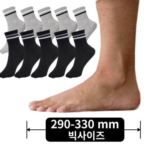 빅사이즈 큰발 왕발 양말은 290mm에서 330mm 사이의 큰 발 크기에 맞게 특별히 고안되었습니다. 고무줄이 넓어 발목에 불편함을 주지 않으며, 발목 주변의 피트감도 우수하여 하루 종일 편안하게 지낼 수 있습니다. 사계절 내내 착용할 수 있는 중목 소재는 보온성과 통기성을 모두 제공하여 발을 온화하고 건조하게 유지합니다.